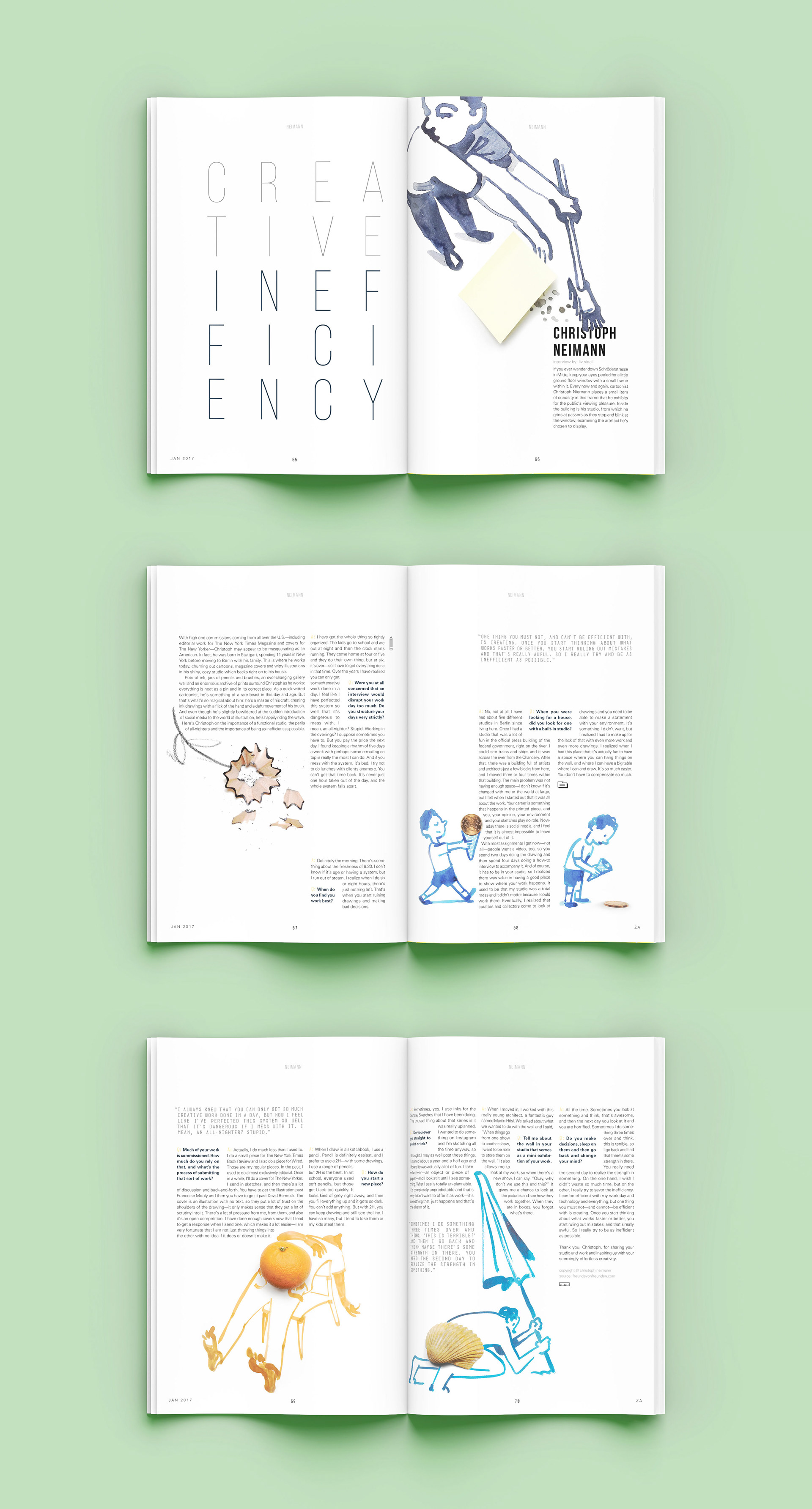 ZA magazine explores the wonderful, and often wacky, world of illustration. A publication devoted to exploring diverse topics and uncovering industry trends and truths. Each issue features an illustrator; the front and back cover is used to showcase their work, as well as a feature article that dives into their journey through the industry.